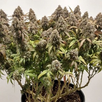 Critical Orange Punch plants are fast-growing and form abundant flower clusters with dense, heavy buds. The buds begin to grow actively in the early flowering phase and become truly massive by the end of the cycle. The buds have a structure typical of productive hybrids: large calyxes, strong resinousness, and a sticky “fruity” aroma that becomes brighter as it ripens.
